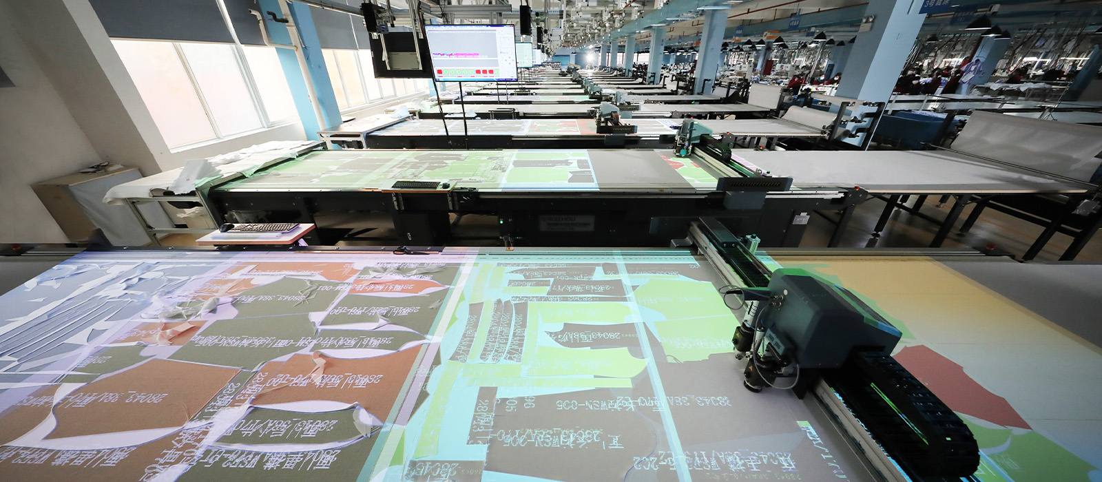 先进的自动裁床设备真正满足一人一版的定制需求;采用圆刀+剪口的无过切技术,