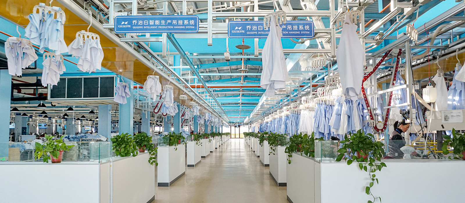 全自动吊挂系统,结合UPC个人定制系统,实现智能输送及流程管理,