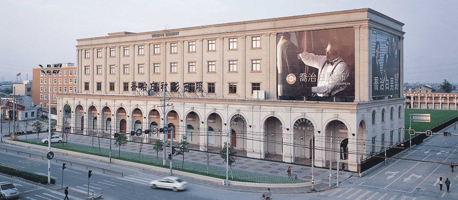 2000年9月,乔治白职业装生产基地建成,成功进行第一次生产规模扩张。